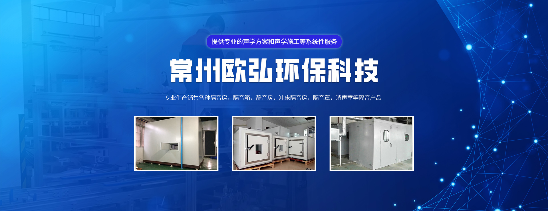 常州歐弘環保科技有限公司是一家專注噪聲治理的企業,公司專注生產銷售各種隔音房,隔音箱,靜音房,沖床隔音房,隔音罩,消聲室等隔音產品??蛻艉w汽車、家電、醫療、健身器械等眾多行業?! ∥夜緦W⒂跒榭蛻籼峁┞暛h境深度檢測;聲學方案研究、設計;聲學產品研發、優選;聲學施工與驗收的一整套聲學系統解決方案,是國內成熟的聲學行業系統服務公司?! ∥覀兊姆疹I域:致力于研究并開發高性能、高性價